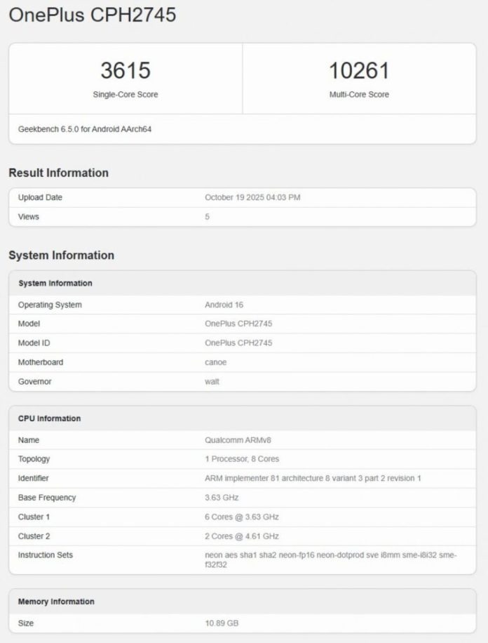 Το OnePlus 15 εμφανίστηκε στη βάση δεδομένων του Geekbench, επιβεβαιώνοντας τα εξής χαρακτηριστικά: