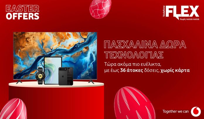 Η Vodafone ανακοίνωσε ευρεία γκάμα πασχαλινών προσφορών σε smartphones, tablets, wearables και Smart TVs, με εκπτώσεις που φτάνουν μέχρι τις 14 Απριλίου τόσο στα φυσικά καταστήματα όσο και στο ηλεκτρονικό της κατάστημα. Παράλληλα, μέσω της υπηρεσίας Vodafone Flex, οι αγορές μπορούν να εξοφληθούν σε έως 36 άτοκες δόσεις.
